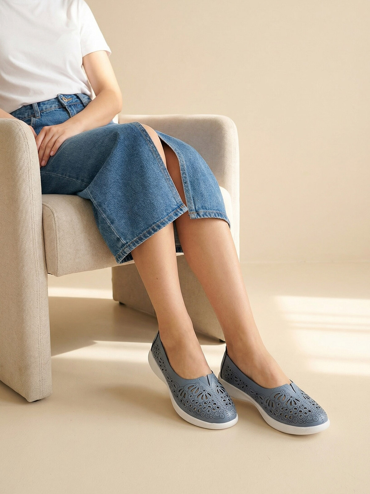 Эти туфли женские летние практичного синего цвета гармонично впишутся в любой Ваш образ. Лаконичный дизайн делает туфли без каблука прекрасным повседневным вариантом – в офис или школу. Гибкая и легкая подошва из ЭВА, с отличной амортизацией ударов при ходьбе, подарит невероятный комфорт.